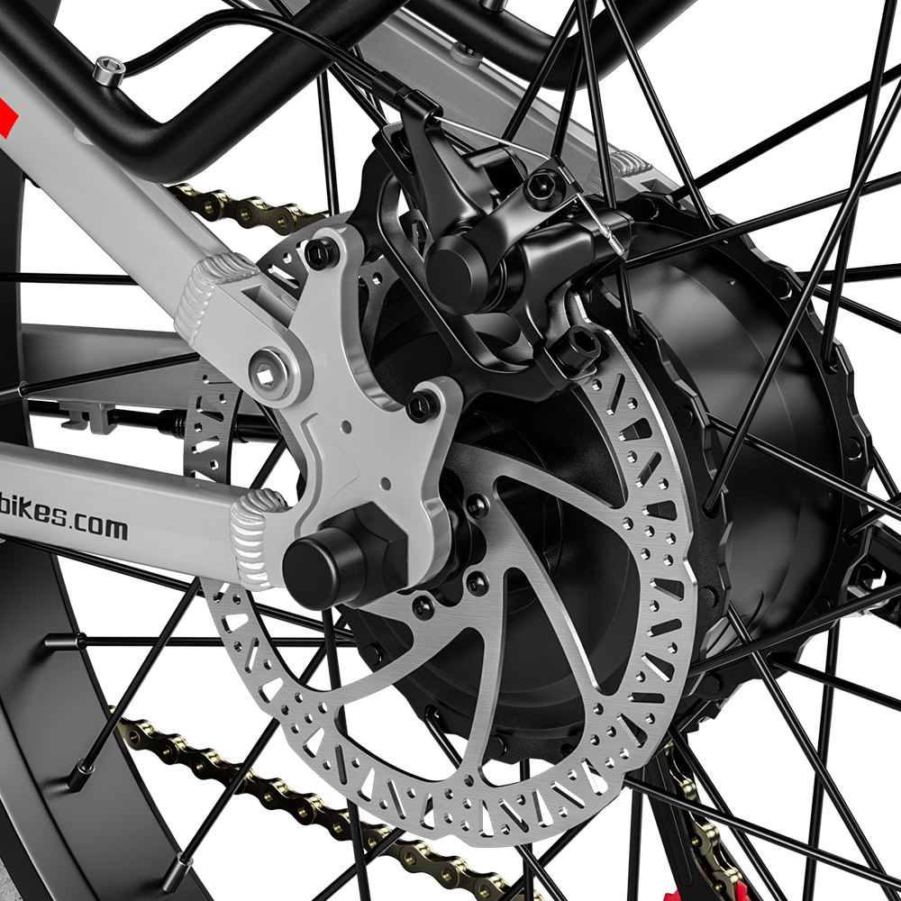 Les freins hydrauliques doubles offrent d'excellentes performances de freinage et un excellent contrôle pour le vélo électrique Shengmilo S600 2000W. Avec une modulation douce et une force de freinage précise, ces freins inspirent confiance au cycliste. Ils maintiennent des performances stables pour la sécurité dans des conditions difficiles. Faciles à installer et à régler, ils peuvent être mis à niveau ou remplacés. Dans l'ensemble, les freins hydrauliques améliorent l'efficacité du freinage, la sécurité et l'expérience de conduite des propriétaires de vélos électriques à double moteur Shengmilo S600.