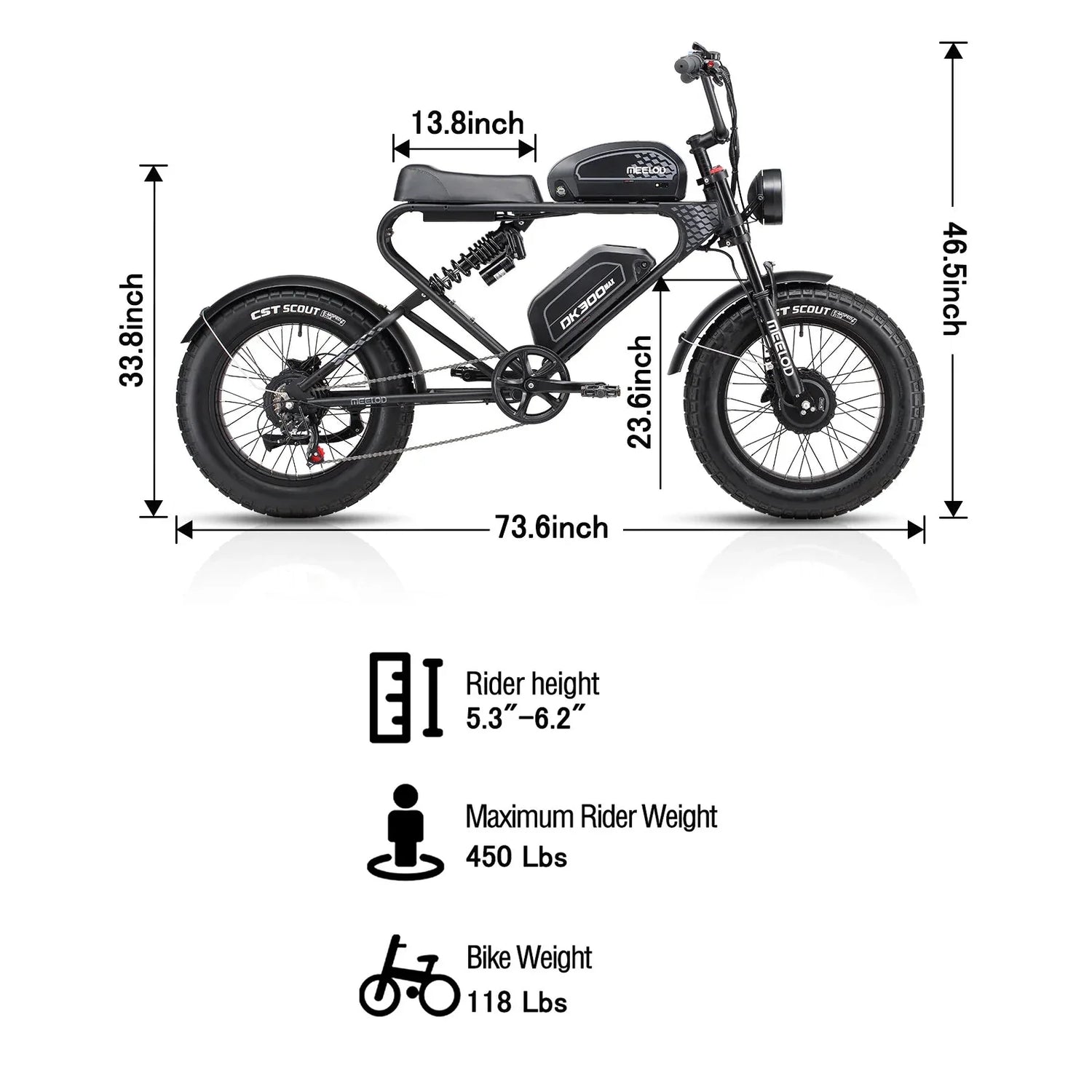 MEELOD DK300 PLUS 20" Vélo électrique de style cyclomoteur rétro 1200W de pointe Deux moteurs 48V 20Ah Batterie