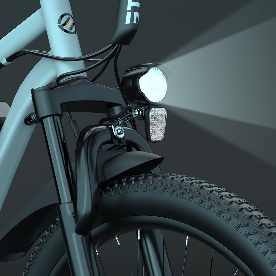 Les phares avant et arrière garantissent la sécurité en illuminant le chemin devant vous et en vous rendant visible de l'arrière en conditions de faible luminosité. Réflecteurs partout pour une visibilité maximale dans le noir.